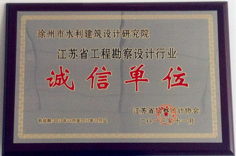 日前,江蘇省勘察設(shè)計(jì)協(xié)會(huì)組織開(kāi)展的 “江蘇省勘察設(shè)計(jì)行業(yè)誠(chéng)信單位”評(píng)選結(jié)果揭曉,我院再次獲得“江蘇省勘察設(shè)計(jì)行業(yè)誠(chéng)信單位”榮譽(yù)稱號(hào)。