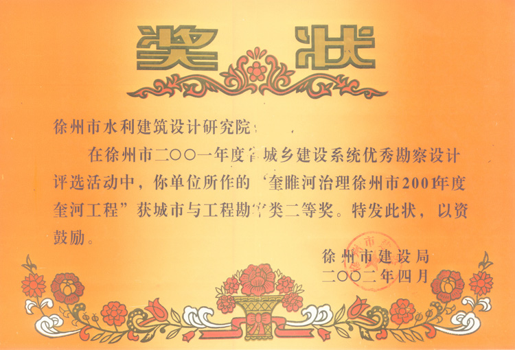 《奎濉河治理2001年度工程》市勘察二等獎(2002)