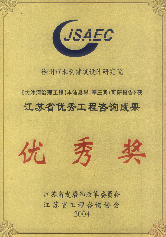 《大沙河治理工程可研》省咨詢成果獎(2004)